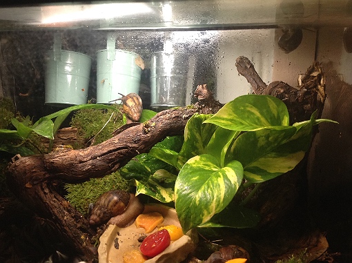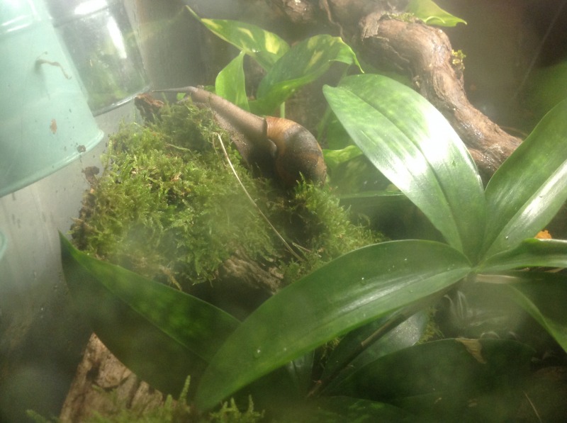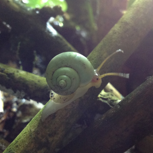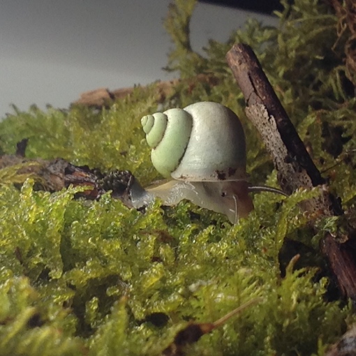 Als ich aufgrund des einsetzenden Schimmels an den schönen Moos- und Flechtenästen, diese aus dem Terra herausnehmen musste, habe ich 3 Schnecken gefunden. Gestern sah ich ein viel kleineres Craveni-Kind. Somit sind also mindestens 4 am Leben. Aber warum "streunern" sie nicht alle zugleich auf Futtersuche durchs Terra?