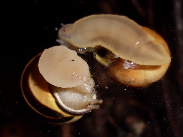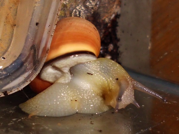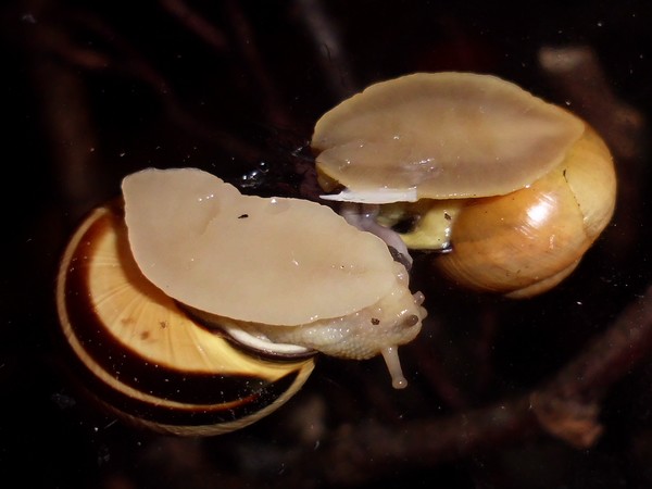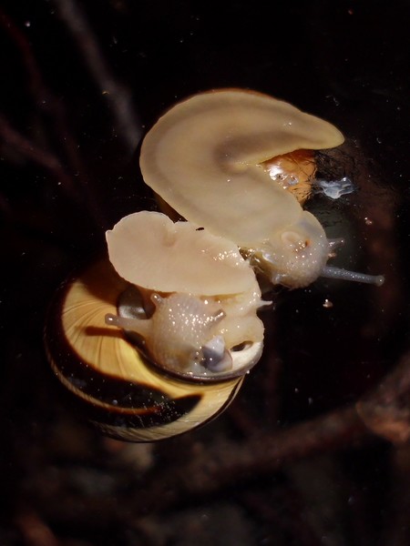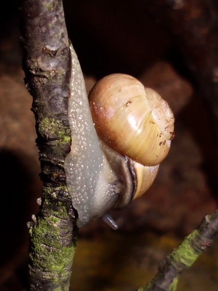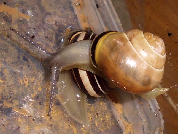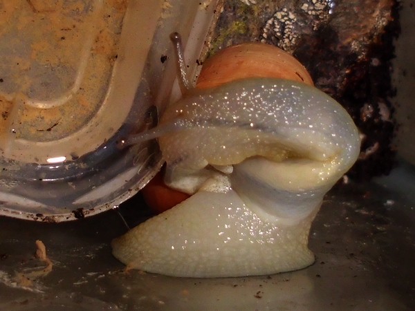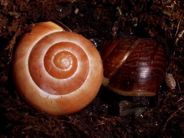 Im Laub war natürlich auch eine Schnecke, und dann unter einer Borke, die auch noch etwas erhöht liegt, da träumte die kleine rote und ganz viele Asseln; die niedrigere Lage sorgt wohl für bessere Feuchte an der Unterseite.