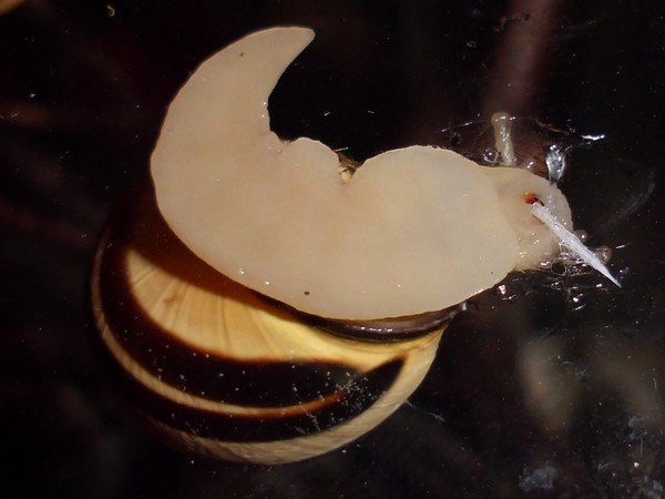 Ein Schnirkel hatte sich so halb unter das größere Borkenstück gequetscht, auf dem die Badeschale steht, das hatte ich schon vorgestern leicht kopfschüttelnd festgestellt. Als ich die Borke hochhob, sah ich dann auch, was der Schlingel dort trieb.