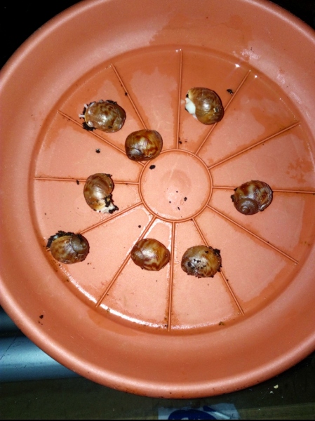 Die Limicolaria agathina wachsen und bis jetzt zum Glück keine Probleme, habe sie aber zur weiteren Aufzucht in einer Box. Die halten einfach die Luftfeuchtigkeit besser und das ist vielleicht wichtig bei empfindlichen Arten. Bei Jungschnecken sind die auch besser.
