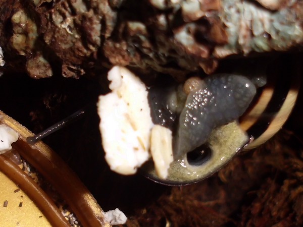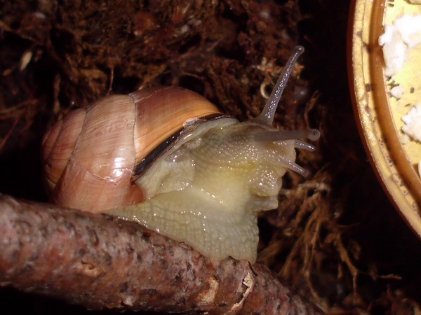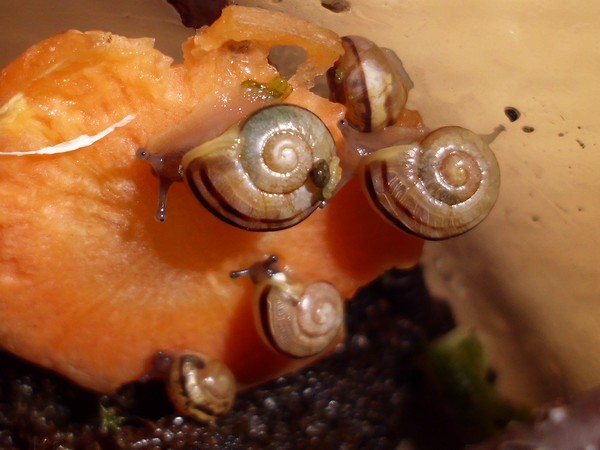 Zunächst sollte ja die Nudelschnecke Gesellschaft von Schnirkels bekommen, aber als eine von denen anfing, am Haus von meinem Flöckchen rumzuraspeln, habe ich sie doch lieber getrennt. In der nächsten Zeit muss dann aber Gesellschaft durch die gleiche Art erfolgen, das ist schon eingeplant. Vielleicht spielt sie dann auch nicht mehr so ausdauernd das Dornröschen...