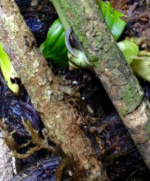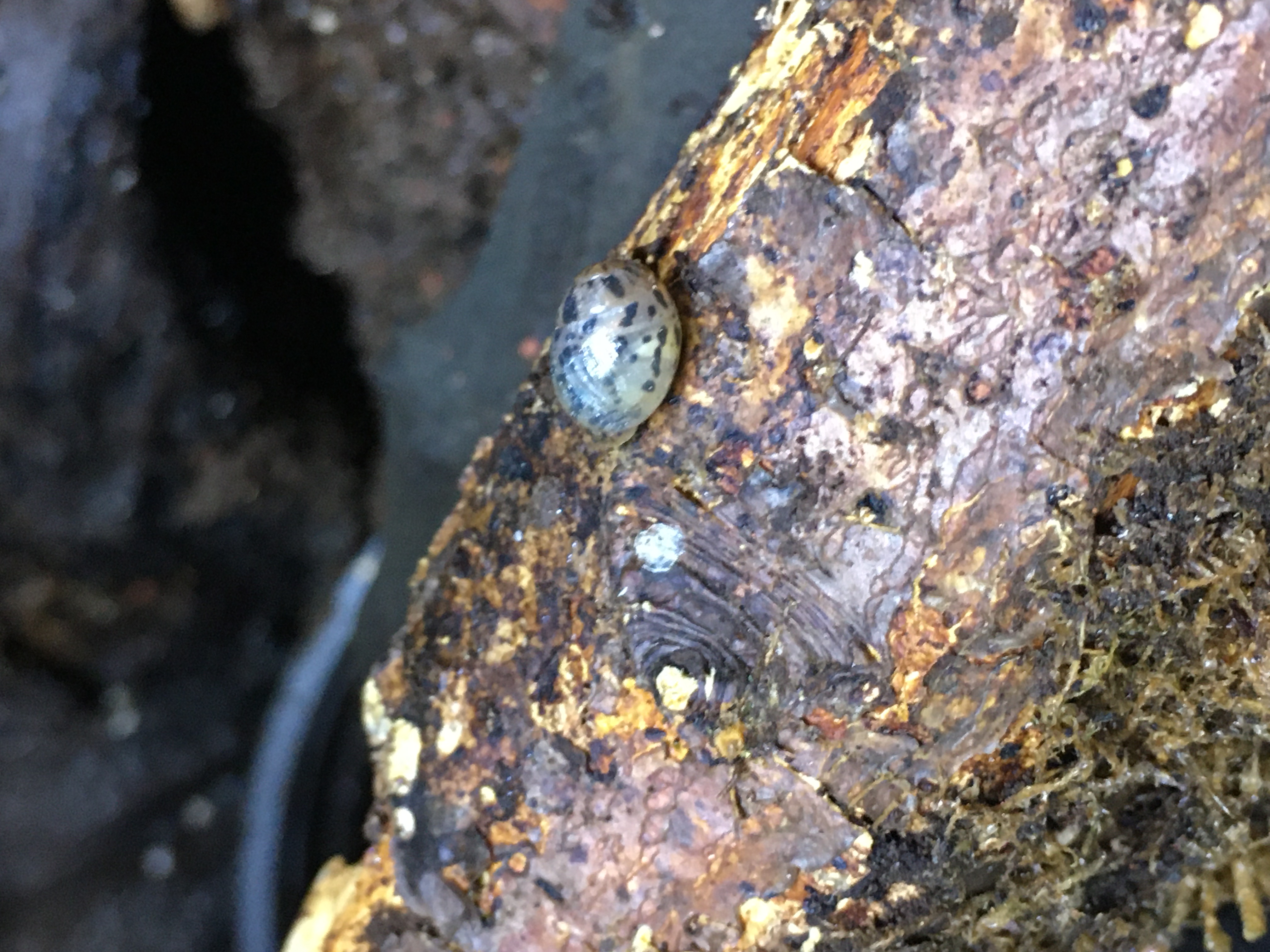 Tagsüber sitzen die Schnecken sehr gerne unter nassem Holz,nasse große Rindenstücke,Röhren und Kork sind ideal.Ebenso dicke Äste gerne schon etwas weisfaul.Damit sich die Feuchtigkeit im Holz gut hält ist es teilweise mit Moos abgedeckt.