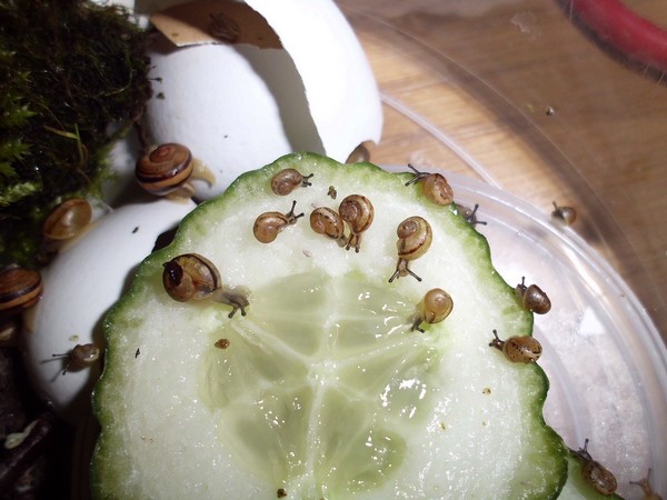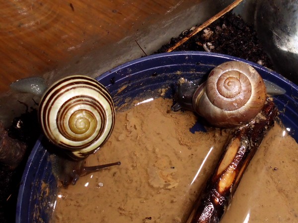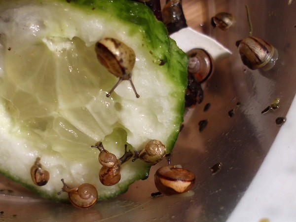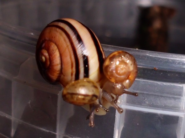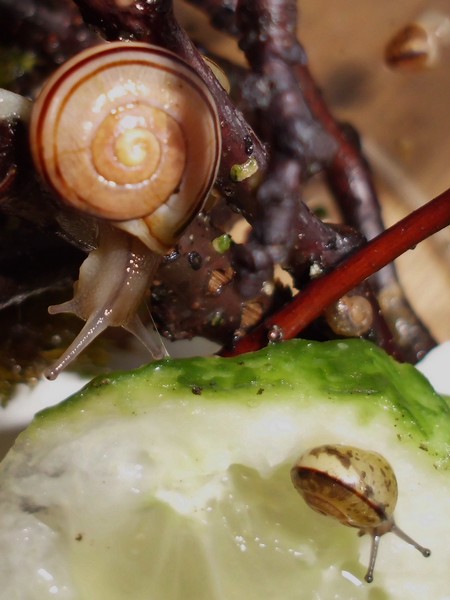 Heute musste ich am Morgen noch schnell eingreifen: ein Schneck versuchte mal wieder, einen anderen zum Absturz zu bringen.