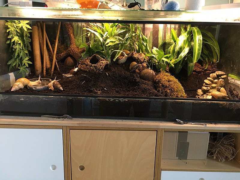 Aber der Rest der Bande ist noch fit, obwohl sich gerade bei Ying und Sneakers die Füße teilweise dunkler verfärbt haben und man an der Columella fast aller Schnecken einen gelblichen Rand sieht. Das macht mir schon etwas Sorgen. Leider habe ich keine Idee, wieso das passiert.