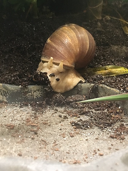 Wolke geht es in letzter Zeit leider wieder schlechter und ihr Fuß sieht dünn und verfärbt aus. Außerdem ist ihr Mantel einige Millimeter weiter nach hinten gerutscht. Allerdings frisst sie, ist aktiv und verhält sich normal, daher lasse ich sie leben. Nun ist nur ihr Gehäuse im hinteren Teil etwas instabil und es sind teilweise dünne Risse darin (2-3), deshalb habe ich den hinteren Gehäuseteil mit Leukoplast umklebt.