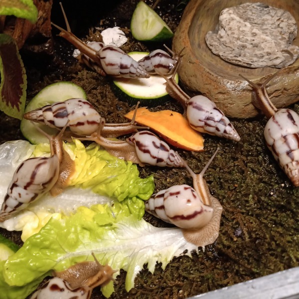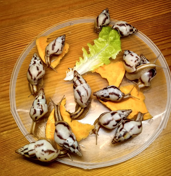 Es sind alles F1-Schnecken und die meisten sind schon ordentlich gewachsen. Anfangs hatte ich auch einige Wildfänge, aber die sind leider alle innerhalb weniger Tage gestorben...