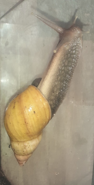 Arnold dürfte jetzt so ca 4Jahre sein, genau weiss ich es nicht, hab ihn mit 3 anderen Schnecken übernommen, da hieß es sie wären so ein Jahr alt . Arnold sah damals nicht schön aus, man sieht es ihm auch leider noch an. Als sie bei mir waren ist 1 Schnecke bald gestorben, die anderen fingen plötzlich an zu wachsen. Jetzt sind sie meine 3 größten, vor allem eben Arnold.