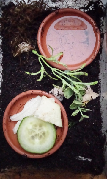 . Der verbliebene ist sehr aktiv und geht auch an 'normales' Schneckenfutter nicht nur an Flechten.