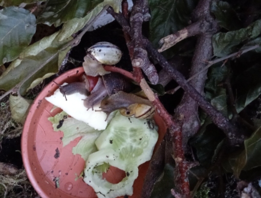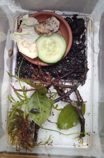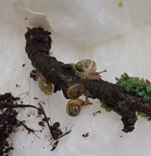 Den fünf Haarschnecken geht es super, sie fressen jedenfalls und sind aktiv von wachsen kann man zwar nich nicht sprechen aber das wird ja noch kommen ebenso wie bei den kleinen Garten-Bänderschnecken