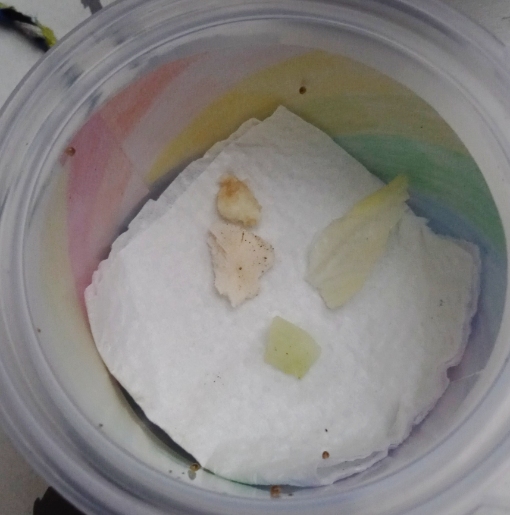 Bei den Steinpickern sieht es leider nicht so gut aus. Von den fünf Eiern sind ja nur 3 geschlüpft, von denen ist nur noch ein kleiner übrig, der Rest lag gestern morgen tot in der Box