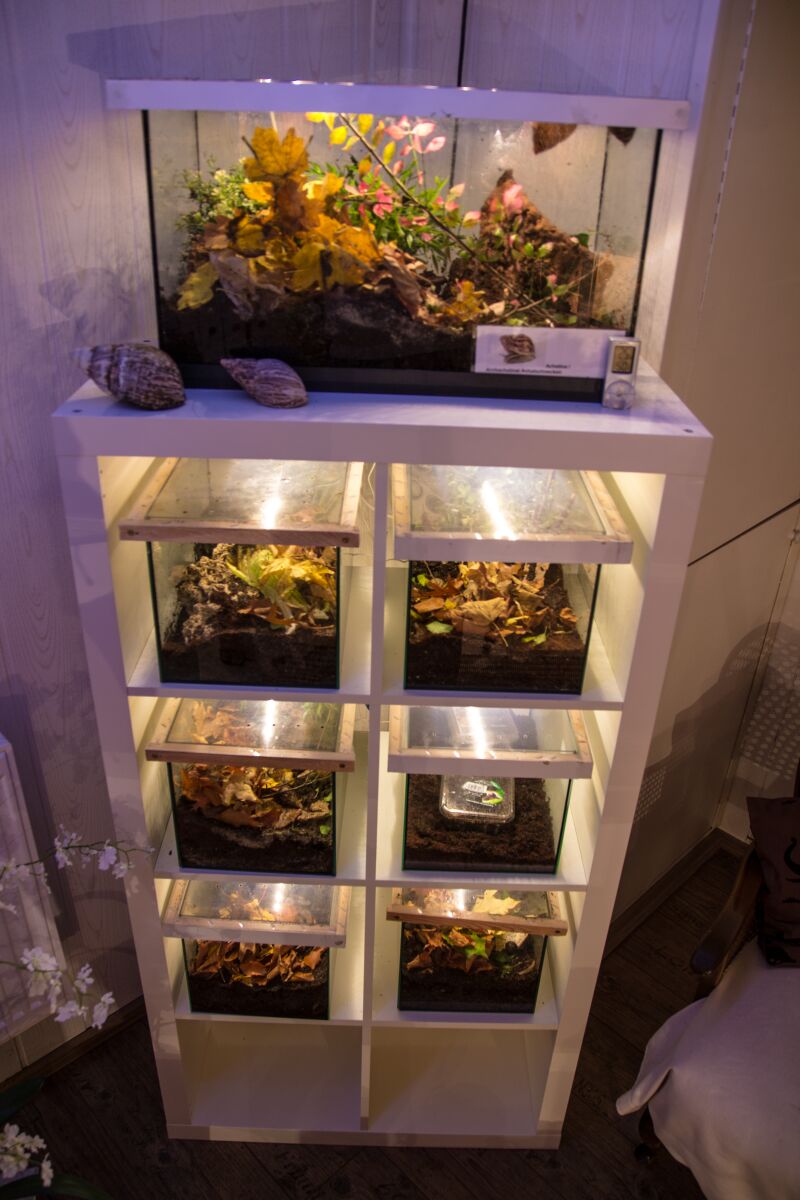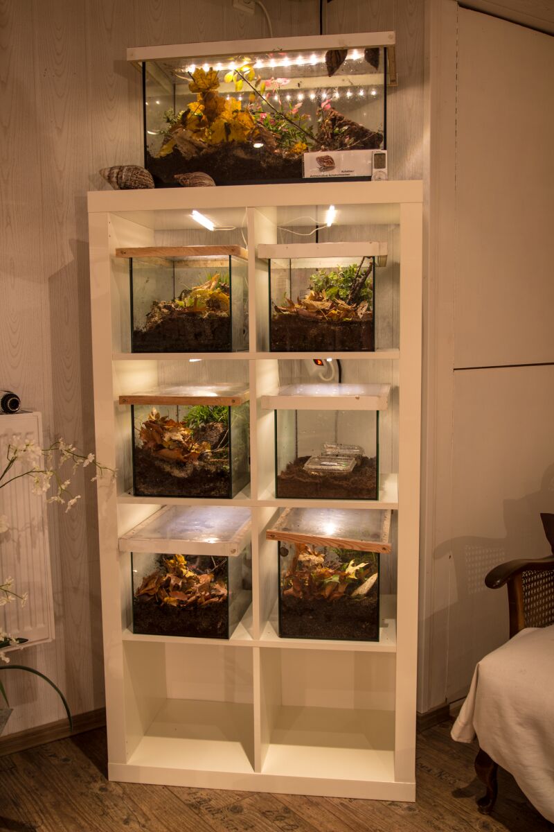 Sandy hat geschrieben:Aber musst Du die Becken da nicht jedes Mal zur Fütterung/Säuberung aus dem Regal holen?