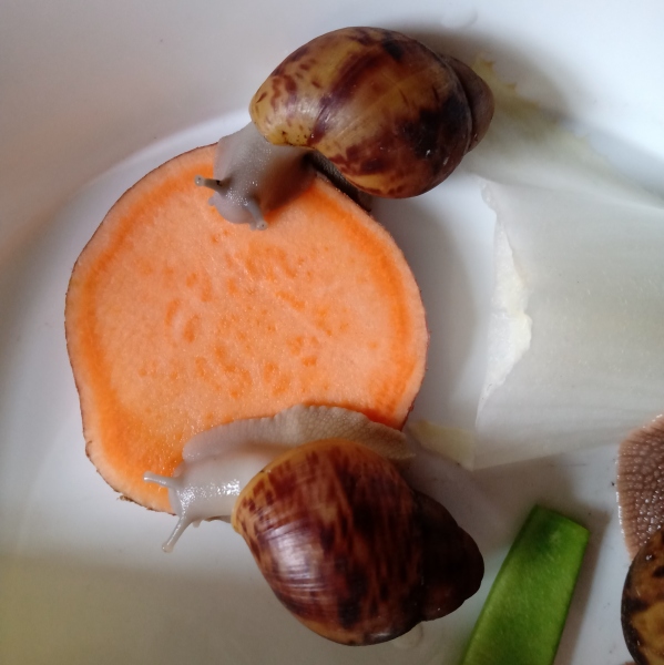 Diese beiden Murmeln ziehen voraussichtlich nächste Woche ebenfalls aus. Das eine ist ein kleiner Silverbody, beim anderen Schneckchen kann ich immer noch nicht mit absoluter Gewissheit sagen, ob es ein heller Silverbody oder ein dunkler Leuzist ist...