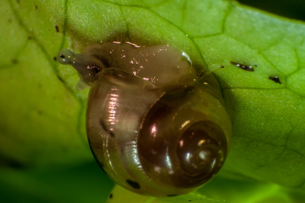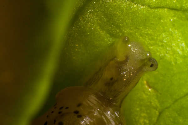 Heute sind es schon etwa 20 Schneckchen..., und toll, aus der Nähe zu beobachten wie erstaunlich "fertig" die schon aussehen nach einem Tag, und wie auf einem Bild zu sehen werden die Salatblätter schon fleissig verdaut!