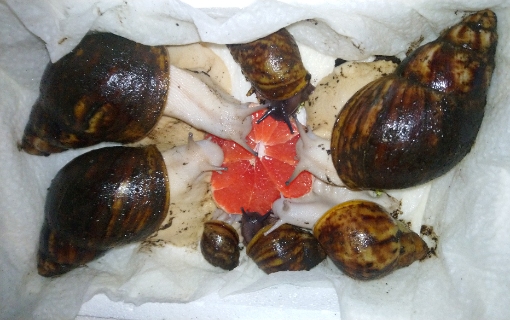 Keine Sorge, ich füttere sie eigentlich nie außerhalb des Terras, aber ich musste einen Teil der Erde erneuern (sie war versumpft) und so waren die Schneckis beschäftigt.