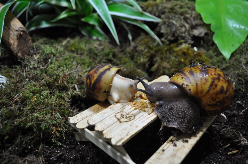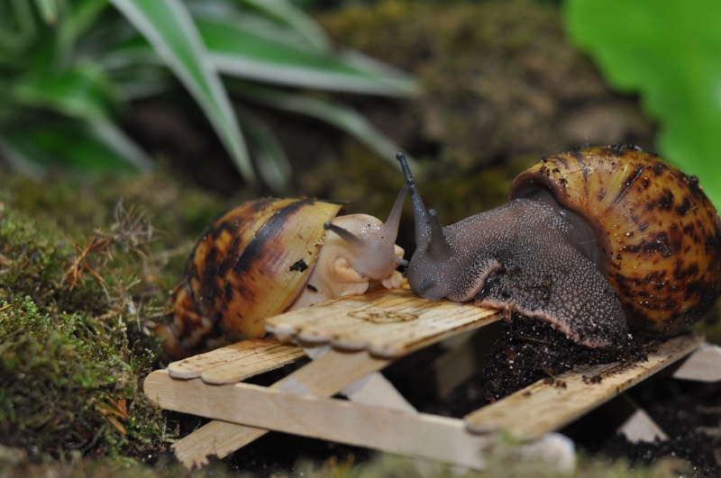 Ich könnte jedenfalls kreischen wie blöd, weil die Schnecken gerade total anders sind. Galadriel, unsere weiße Schlaftablette, kriecht rum und frisst Kalk. Radagast flitzt auch umher...Wahnsinn. So lange habe ich die noch nie am Stück beide gesehen. Ob es am Licht oder an dem euen Mobilar liegt