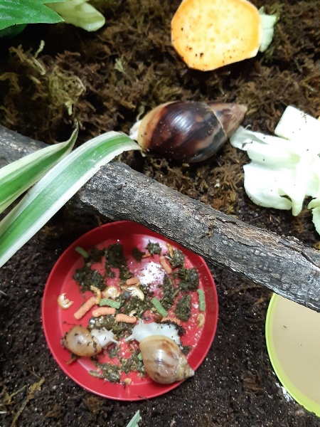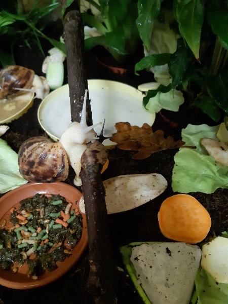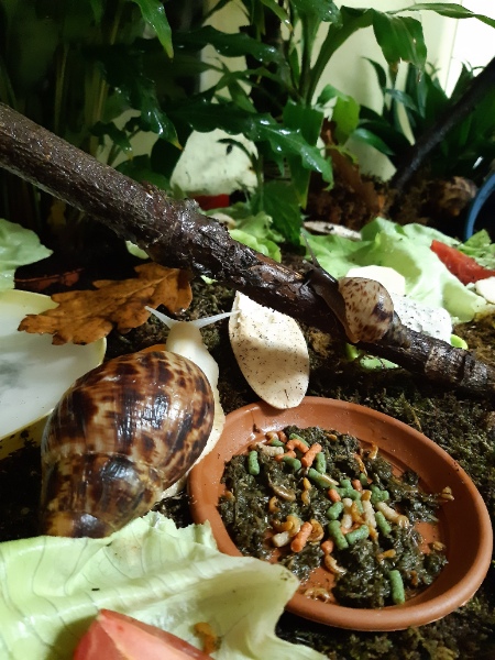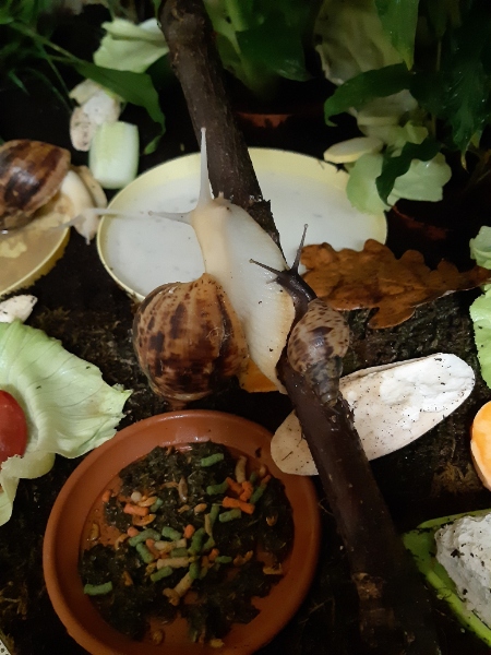 Gestern Abend fand ich im Terra 2 größere Schnecken und ich sagte zu meinem Jung: Such mal Schnecki. Der guckt mich mit fünf Fragezeichen an und nimmt die kleine Box und sagt: "gefunden ". "Nee, Schildi ist doch bei dir.", Da guckt er in sein Terra, guckt mich an und sagt wieder:"gefunden ". Ich wollte es nich glauben, aber die andere Große war Schildi...