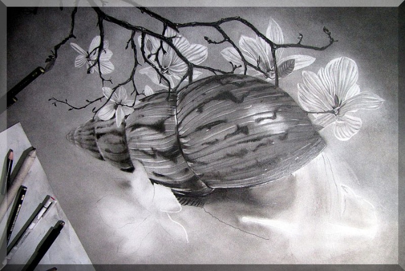 Schneggeli - für diese Zeichnung habe ich etwas mehr als 16 Stunden benötigt, verteilt auf 4 Tage ...
