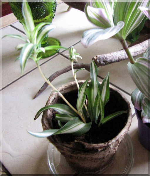 Tradescantia albiflora 'nanouk' muss erst einmal sehr lange wachsen, bis ich von den neuen Trieben Ableger pflanzen kann. Ob ich sie tatsächlich in einem meiner Schnecken-Terras einsetze, weiß ich noch nicht. Eigentlich wollte ich sie eher ins Assel-Habitat pflanzen.