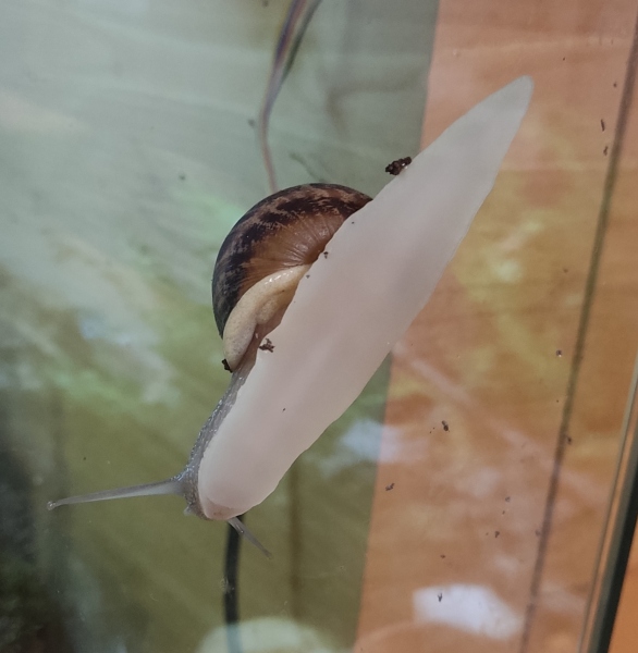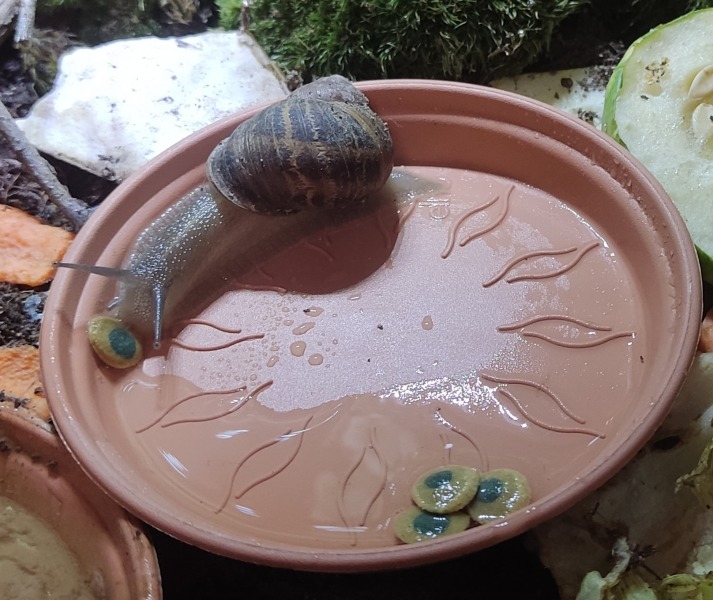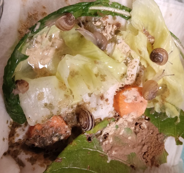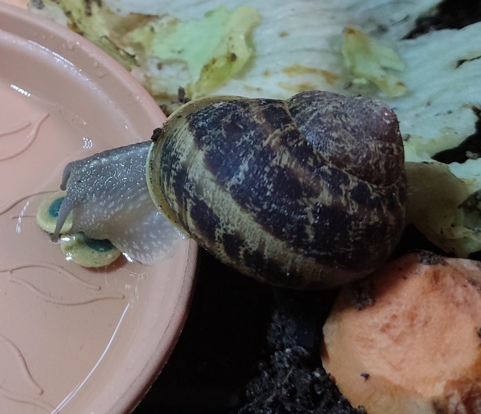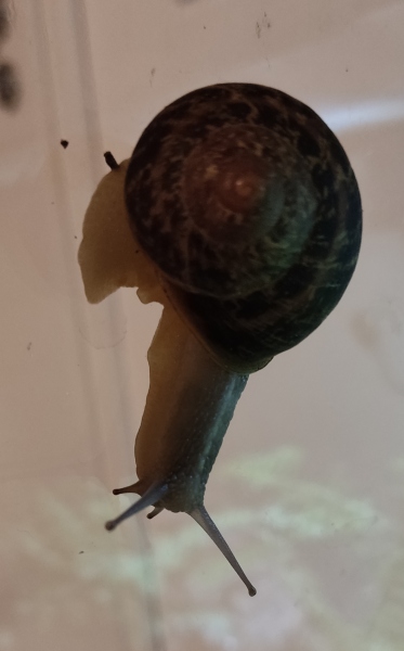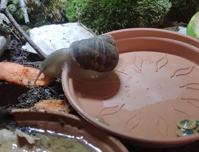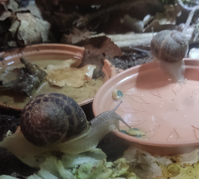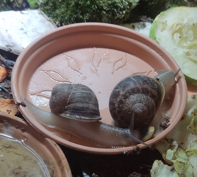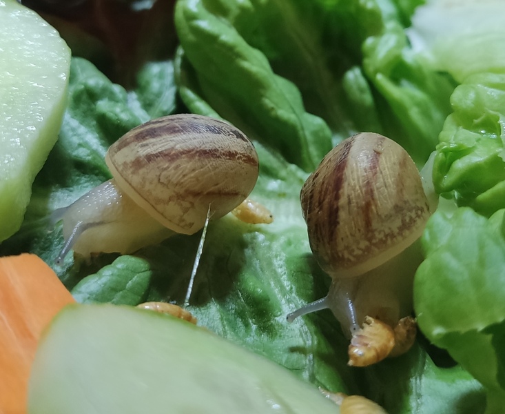 Wir waren zwei Tage außer Haus, die Schnecken hatten also eine Nacht sturmfrei. Wir kamen gestern Nachmittag zurück und ich hatte eigentlich erwartet, dass alle schlafen. Aber nein - Frosti hat eisern das Hygrometer bewacht - die Luftfeuchtigkeit war aber ok!