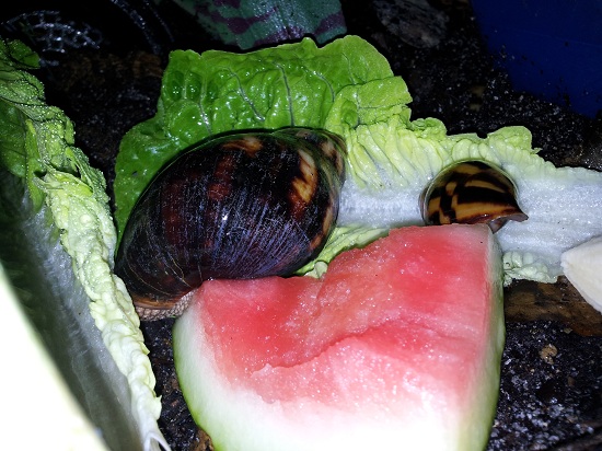 ?!Meine caramellfarbene Achatina achatina gestern Abend beim Putzen.