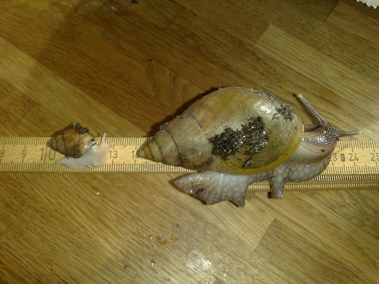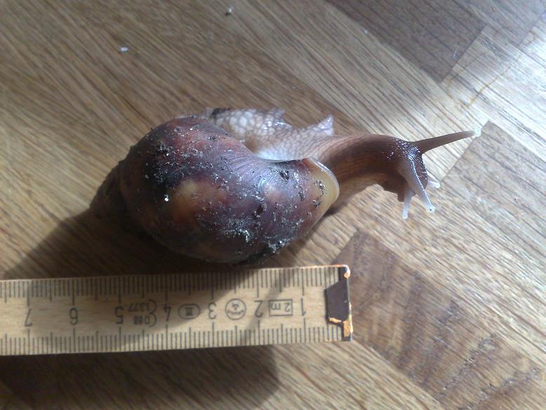 Booah.., ist er gewachsen.. ist schon so über 7cm groß?? Dein Kashore ist wunderschön.. "eine handvoll" ist gut.., wenn er seinen Körper richtig ausfährt brauchste beide Hände.. und vielleicht sogar ne dritte.. hi hi Ich mag meine kleinen auch ganz doll, aber mein Karlsson ist für mich auch ein besonderer Schneck.., der ist jetzt fast 15 cm groß.. und wenn der seinen Körper ganz lang macht, schmelze ich dahin..