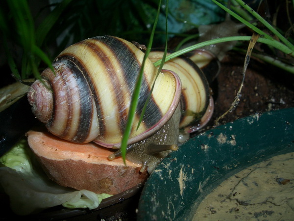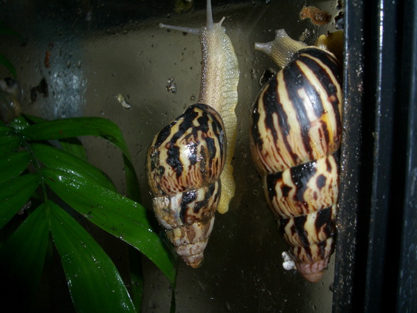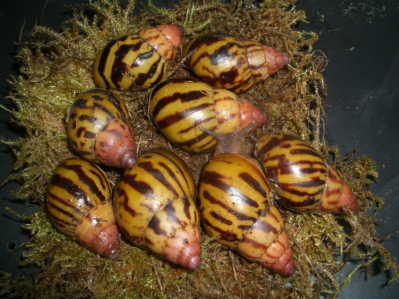 Ich halte meine Acavus bei 24-26°C und hoher Luftfeuchtigkeit. Allerdings legen sie nur ein Ei, woraus - ähnlich wie bei den Megas - anfangs das Ein oder Andere Baby schlüpft, am Ende aber immer seltener. Das ist sehr schade, sind es doch so tolle Schnecken. Meine Acavus haemastoma haemastoma sind erst etwa 6-9 Monate alt und haben noch keine Eier gelegt, die Acavus haemastoma melanotragus legen relativ häufig, geschlüpft sind aber in der ganzen Zeit nur 3 Jungtiere, wovon 2 inzwischen verstorben sind.