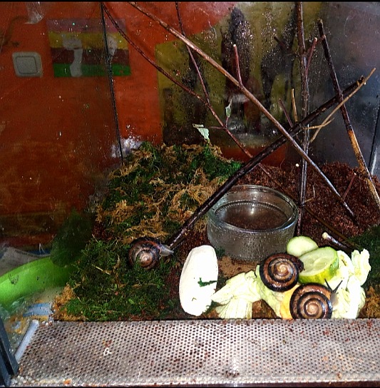 Neu eingezogen sind Schnecken aus der Karibik. Kleine Ufos, sehr hübsch. Habe sie in einem kleinen Glassterra auf dem Schreibtisch. Sie schlafen am Tag unter Moos oder im Boden, und kommen am frühen Abend zum schneckeln heraus. Bei momentanen Temperaturen ohne Heizung und hoher Luftfeuchtigkeit, von über