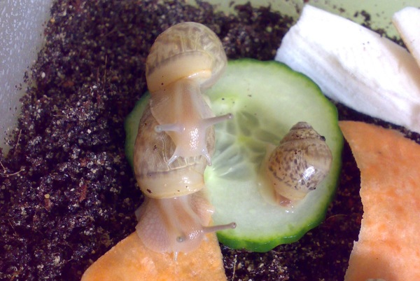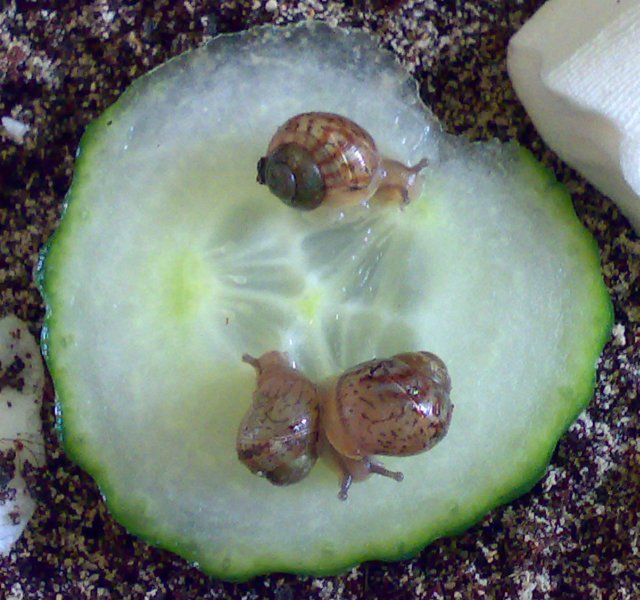 Kurz nach dem Schlupf des ersten Babys habe ich im Substrat Trauermückenlarven entdeckt, ich habe daraufhin die anderen Eier und die drei inzwischen geschlüpften Babys in neues Substrat gelegt.......viele Eier zerbröselten mir schon in den Fingern, darin waren unterentwickelte kleine Schnecken oder nur Glibber.