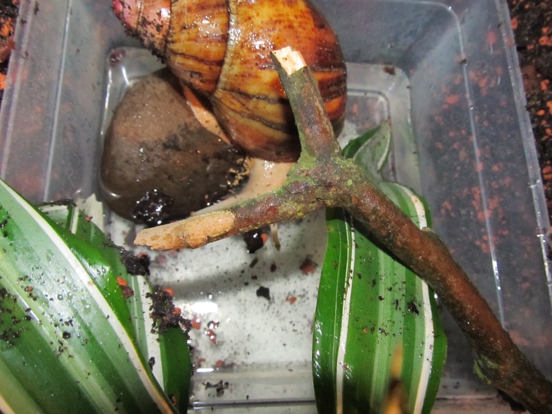 Der Ludwig war am essen aber als ich den Deckel anhob zum fotografieren hat er sich in sein Haus gezogen.
