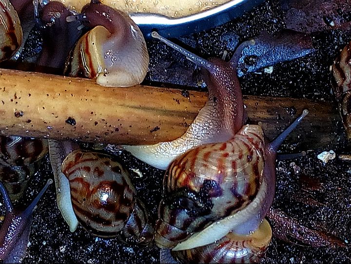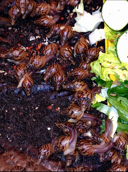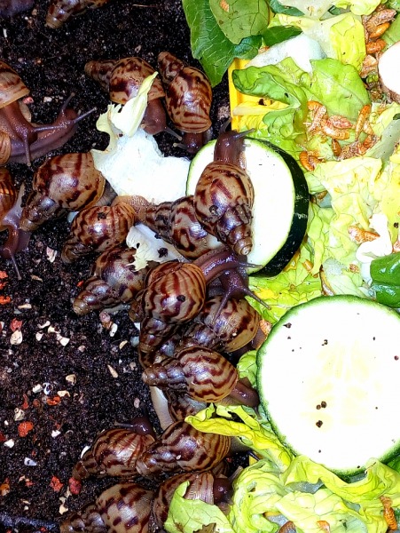 Die Jungschnecken wachsen sehr schön und gleichmäßig. Sie haben wunderschön gezeichnete Häuschen und einen tollen Wachstumsrand, verbrauchen auch viel Kalk.
