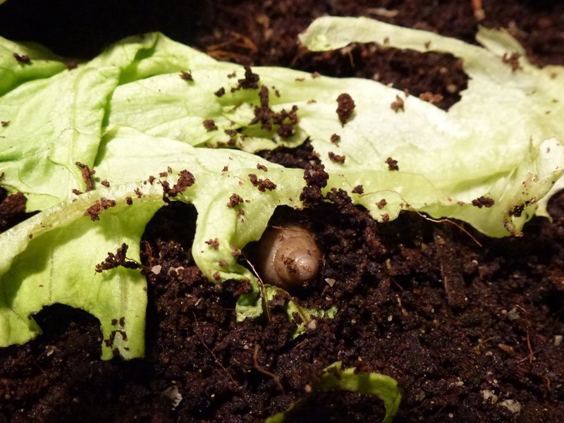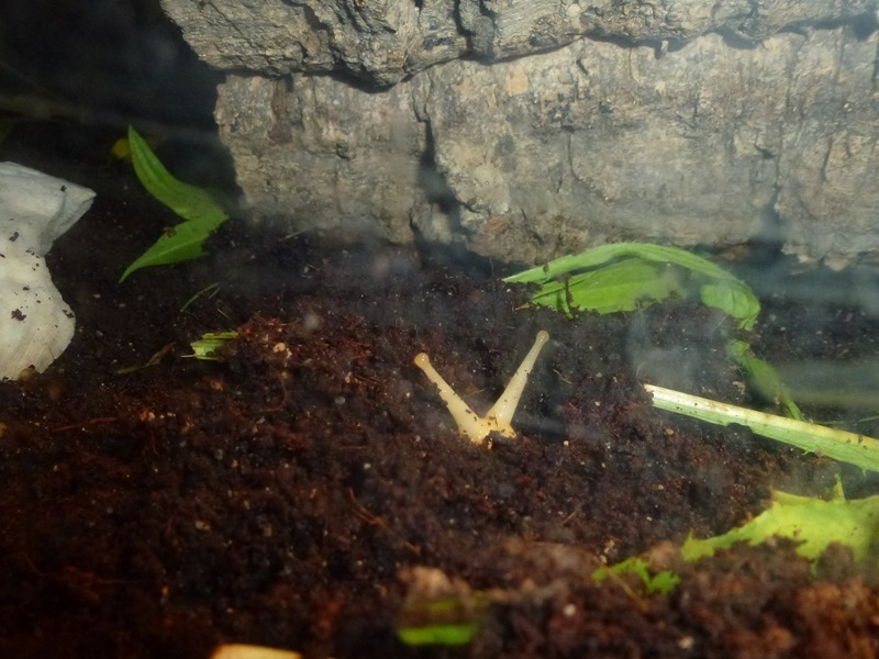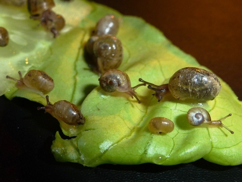...dieses Gelege geschlüpft ist! Es ist das erste meiner Schnecken, und mitten in die Wurzeln der Pflanze gelegt. Ich vermute, dass es ein Rodatzii-VA-Gelege ist, da die anderen eigentlich noch zu jung sind. Oder Jacky hat das Gelege mitgebracht, als er/sie zu mir gekommen ist. Naja - Schweren Herzens musste ich mich von den meisten trennen und einfrieren. Viele waren zum Glück noch gar nicht richtig geschlüpft. Ein paar musste ich aber doch behalten, das ging einfach nicht anders