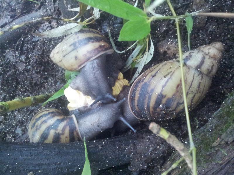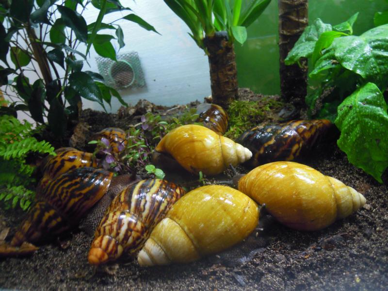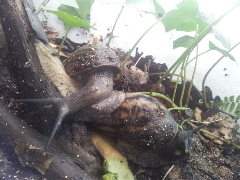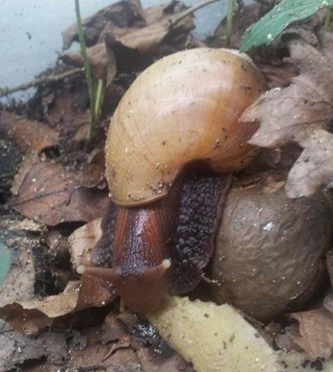 Eine der drei Achatina fulica rodatzii, an denen ich auf der letzten Terraristika einfach nicht vorbei gehen konnte... sie haben so tolle Weichkörper! Inzwischen sind sie schon doppelt so groß wie beim Kauf. Ich bin gespannt, wann sie anfangen, mich mit Eiersuche zu beschäftigen