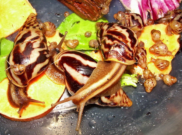 Gestern abend habe ich mein Terrarium mit den Limicolaria Flammea sauber gemacht.