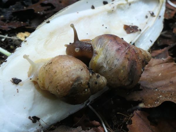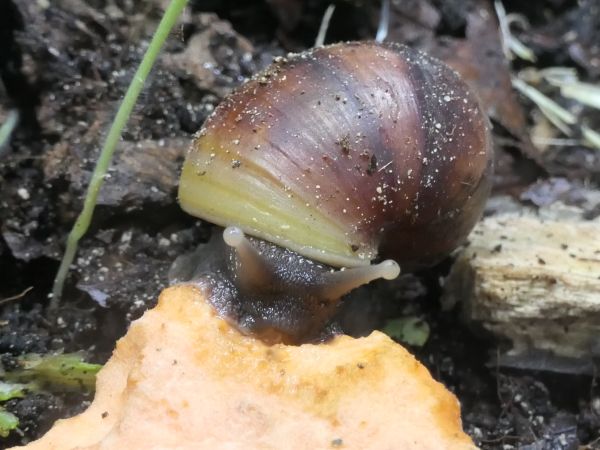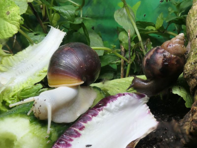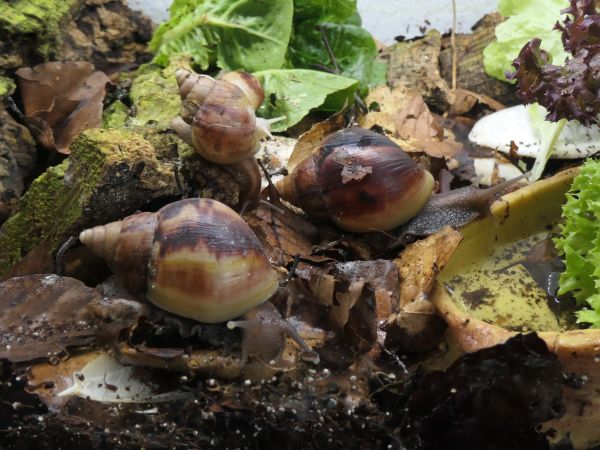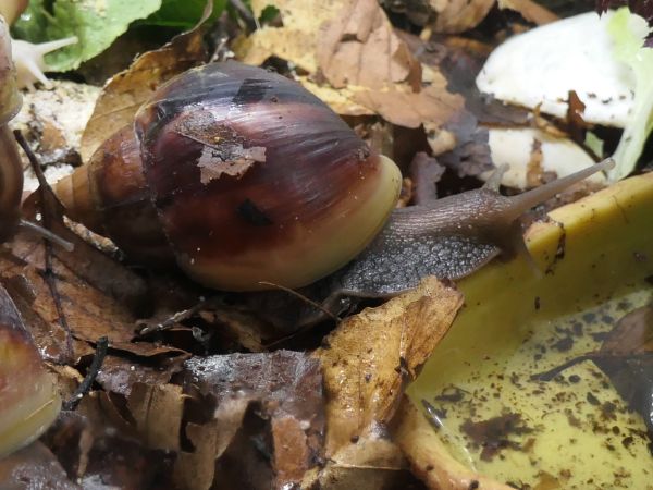 Bei meinen fünf hat sich ein bisschen was getan. Die beiden wildfarbenen und die White Jade haben ihre Blätterteigprobleme komplett überwunden und wachsen jetzt sehr schön gleichmäßig und zügig weiter. Die Wachstumsränder sind zwar nicht ganz das, was ich gewöhnt bin, aber für das, was sie überstanden haben, bin ich mehr als happy mit ihrem Zustand. Die beiden Albinohäuschen zieren sich zur Zeit noch etwas. Die Vollalbino wächst langsam, aber stetig und der Zuwachs wird von Woche zu Woche etwas glatter. Die Rodatzi macht mir leider wirklich Sorgen. Ich hoffe sehr, dass sie den Spalt irgendwann wird schließen können. An dieser Stelle hatte sie lange Zeit eine Delle, aber jetzt, wo sie wieder wächst, wächst das Häuschen an dieser Stelle leider nicht richtig mit. Aktuell schafft sie es noch sehr gut, sich in ihr Häuschen zurück zu ziehen. Sollte das irgendwann einmal nicht mehr der Fall sein, wird sie wohl leider doch getötet werden müssen. Solche Stellen gehen auf Verletzungen des Mantelsaums zurück. Vernarbt der Mantelsaum dauerhaft so stark, dass das Periostrakum nicht mehr richtig gebildet werden kann, kommt es zu solchen Spalten.