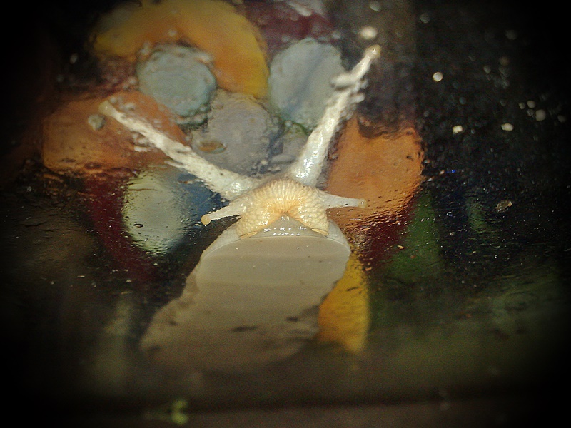 Echt unglaublich, was die Schnecken manchmal für akrobatische Verrenkungen machen können. Das vorletzte Bild sieht aus wie ein grinsendes Schnitzel mit Fühlern... sooo süß!!