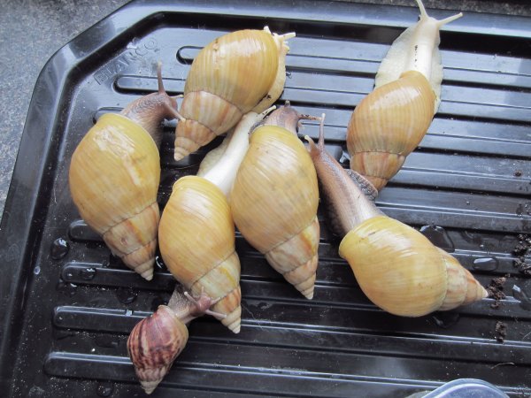 5x A.fulica "VA",2x adult, 3x 5Monate (immernoch meine Schätze Obs und Ete, die "kleinen" sind eigene Nachzuchten)