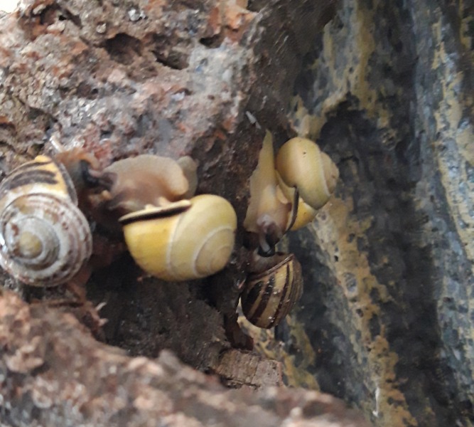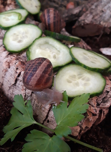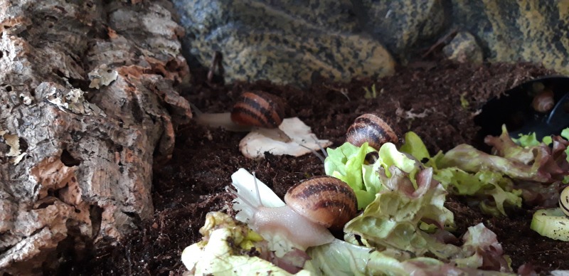 Filu hat geschrieben: in einem Terrarium sah ich Achatina fulica. Ich bin zwar kein Achatschnecki Experte, aber ich bin sicher 30% Luftfeuchte und 20 C° sind schlecht. Der Boden war übersät mit Baby Häusern und ich habe keine einzige lebende gesehen. Die großen waren verbuddelt, die Erde nicht aufgekalkt Auf dem Schild darunter stand ,,Bodengrund: Erde" Und die Wasserschale war aus Stein