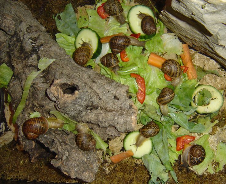 Sehr zu meiner Freude treibt der Regen draußen meine Schnecken abends früher aus dem Bett und auch morgens sind sie länger aktiv. So sind gestern ein paar schöne Fotos entstanden.