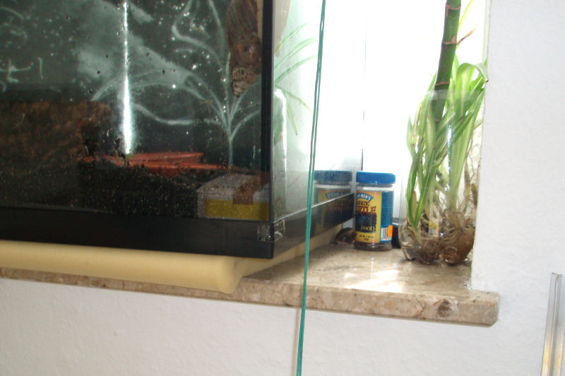 Die Box ist noch nicht ausreichend eingerichtet, weil ich natürlich nur meine kleinen Einrichtungsgegenstände mitnehmen konnte und keine großen Kletteräste, die werd ich mir dann hier noch suchen.