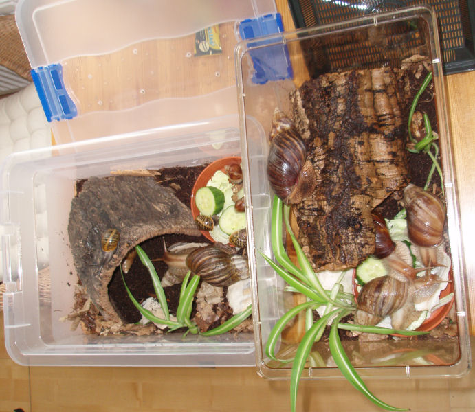 Da ich niemanden in meiner näheren Umgebung gefunden habe, der für ein halbes Jahr auf meine Schnecken aufpassen wollte (zumindest freiwillig und gerne), hab ich mich entschlossen, sie einfach alle mitzunehmen.