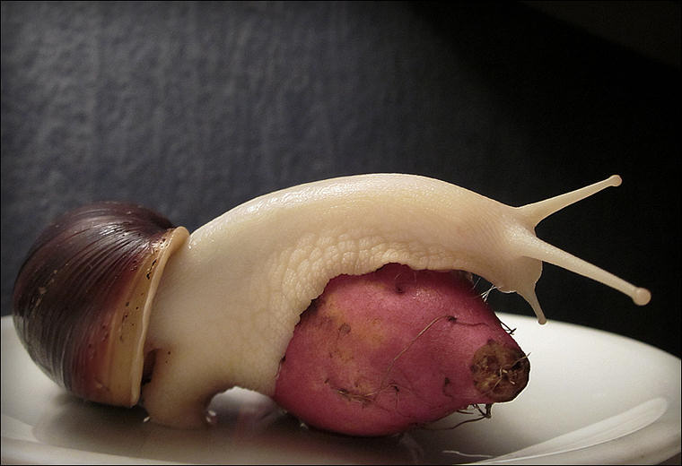 Hier schlingt man sich ganz fest um den Ast ... dann kann man richtig gemütlich futtern