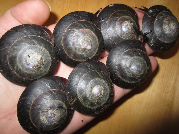 Vor etwas mehr als 3 Monaten etwa fand ich beim Terraumbau zufällig zwei schöne Gelege, mit 9 und 10 schön großen Eiern...aus denen sich leider gar nichts entwickelte. Als ich diese Gelege nach 6 Wochen entsorgte, fand ich ein weiteres Gelege, nochmal 10 schöne große Eier. In diesen entwickelten sich Schnecks, die leider mit einer Größe von 1,5cm Durchmesser in den Eiern abstarben. Als das Gelege zu riechen anfing habe ich es entsorgt und gleich das nächste gefunden: 11 hübsch große Eier. Leider ließ sich gut 20 Tage später ein Bodengrundwechsel nicht vermeiden, so dass ich auch das Gelege herausnehmen musste. Gaaanz vorsichtig, ich habe versucht, die Eier dabei nicht zu drehen, sie warm gehalten und später an gleicher Stelle wieder vorsichtig eingesetzt. Ein Ei habe ich geöffnet, darin eine ca. 0,7cm große Schneck. Jetzt bete ich, dass trotz Bewegen doch noch etwas schlüpft.
