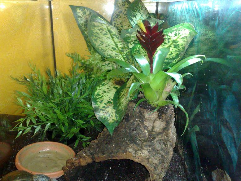 Bromelie in ein töpfchen tun und in einen Ausgang der Korkröhre stellen, ein bisserl basteln ist angesagt.