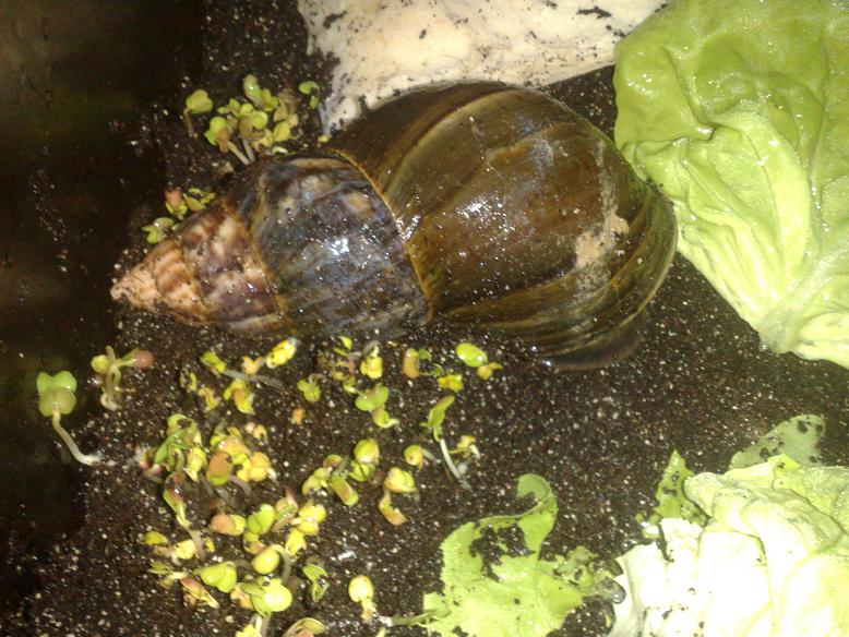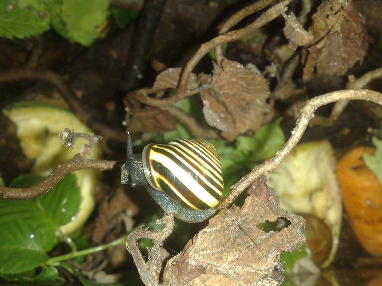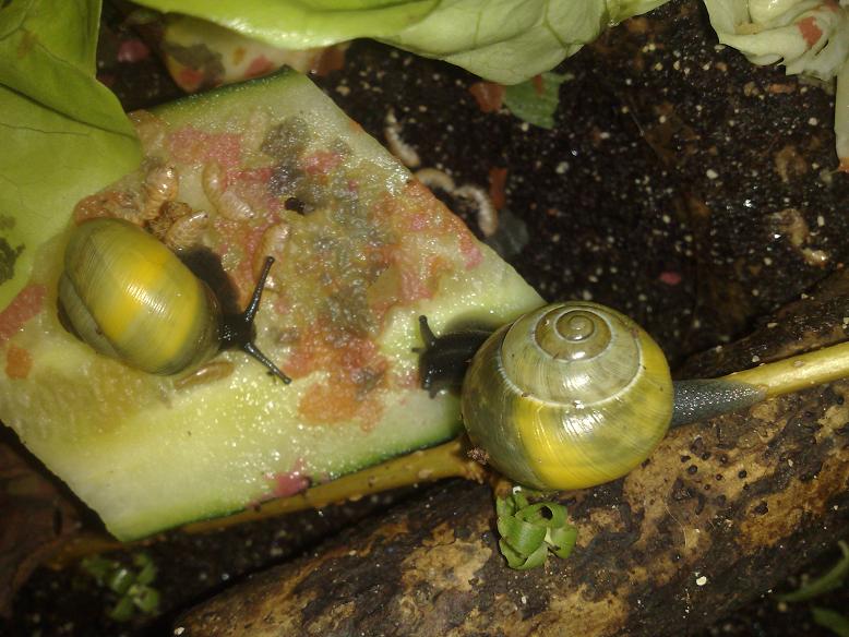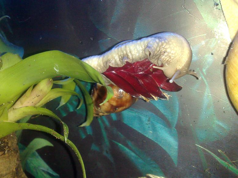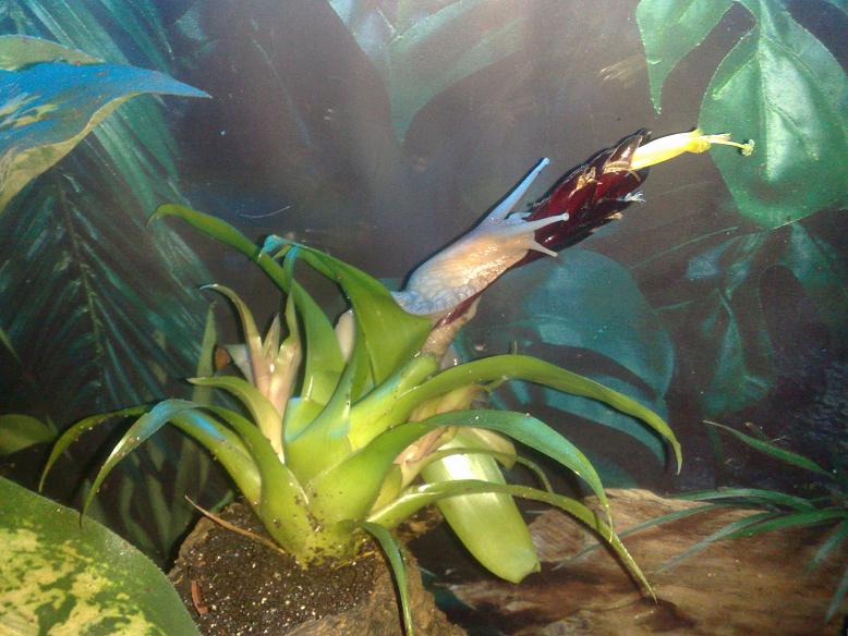 Beide Pflanzen haben die Nacht überlebt, zwei Schneckies haben unter der Bromelie geschlafen.