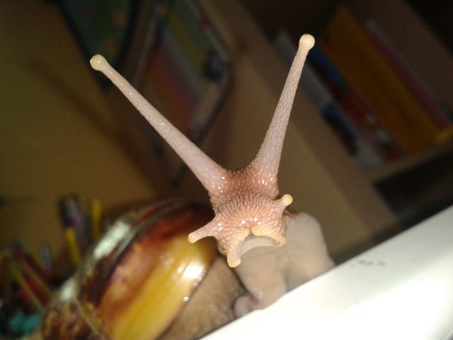 Stimmt, ich versuche nächstes mal beide Augen auf das Bild zu bringen, das hab ich auch gemacht, ich hab meistens gleich 3 Bilder von einer Situation aber da war halt wenigstens der Kopf der Schnecke einiger Masen scharf