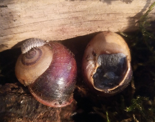 In der Walderde waren auch noch ein paar äußerst hübsche kleine hellgraue Nacktschnecken, die führen aber ein total heimliches Leben, da krieg ich nur ganz selten mal eine zu Gesicht wenn sie grad von einem Versteck ins nächste schneckt.