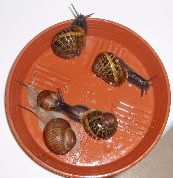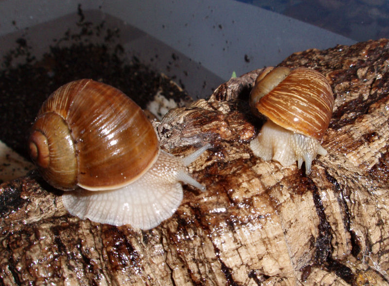 Manchmal kleben sie sich für ein paar Tage irgendwo fest, und dann kriechen sie wieder herum. Ich hab sie auf der Fensterbank am meistens leicht geöffneten Fenster stehen. Richtig Winterschlaf machen, können sie dieses Jahr erst Anfang Januar, weil ich erst dann die Möglichkeit habe, sie entsprechend unterzubringen. Jetzt haben sie es dafür etwas frischer, dass sie sich schonmal daran gewöhnen können.