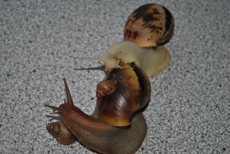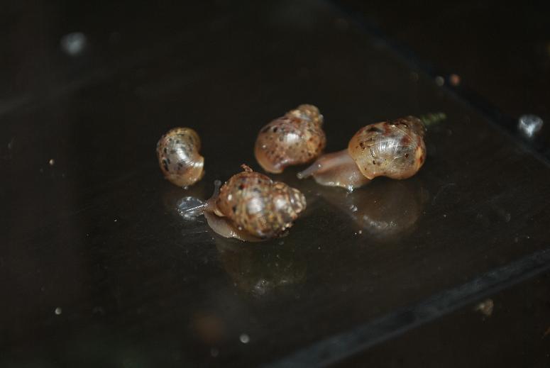 Von der Größe der Fulica ist alles dabei, kleinere von0,5 - 1cm und einige sind mit 2 cm auch schon am rumschnecken.