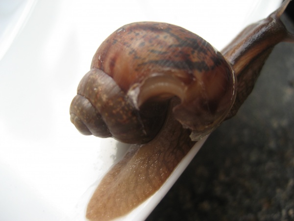 Es hat tatsächlich bis August gedauert, da entdeckte ich auf Gelis Hompage meine neue Liebe:Achatina Fulica WJ.Eine Woche überlegt, angefragt und bald stolze und begeisterte Halterin von 5 keinen WJ,10 Wochen alt, und schon deutlich größer als die Fulis damals im selben Alter: