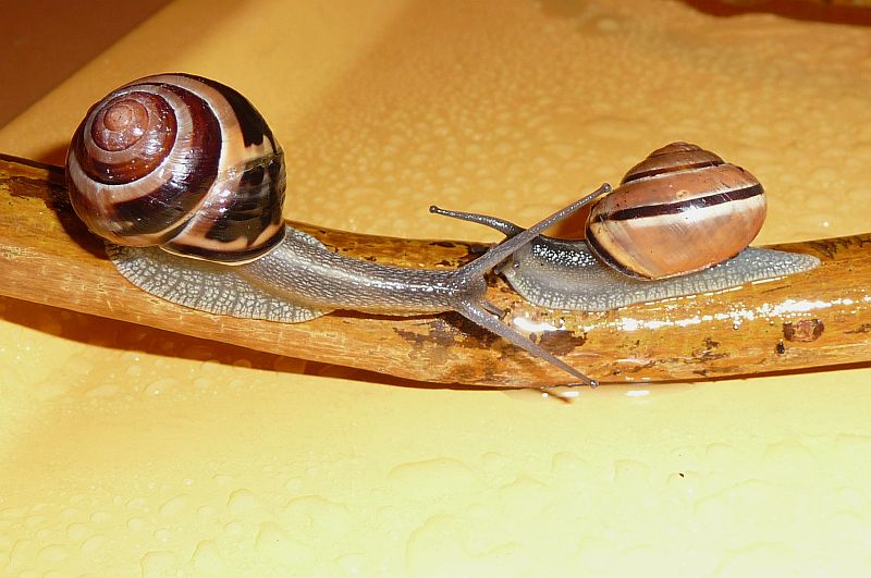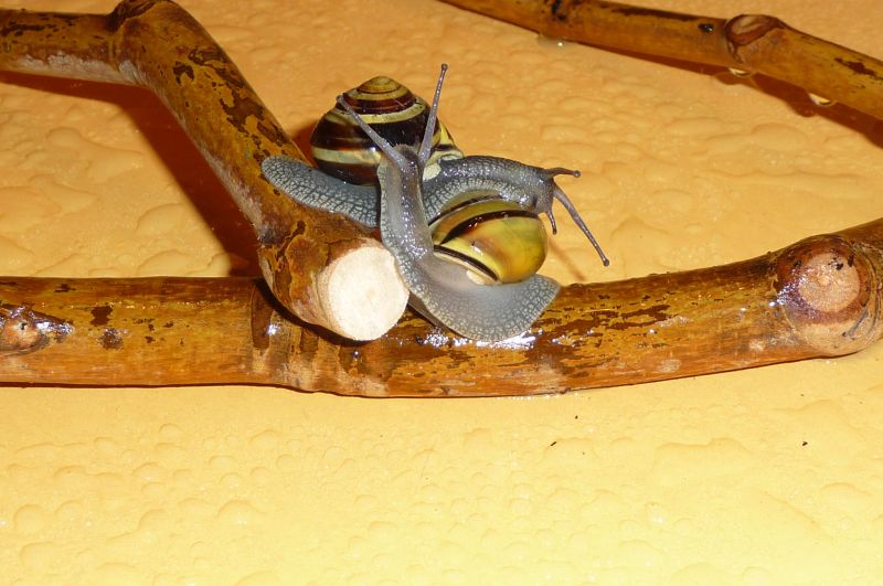 Ich halte derzeit 5 erwachsene Hainbänder und ca. 30 Babys. Für die Fotosession hatten sie "Freigang" unter Aufsicht